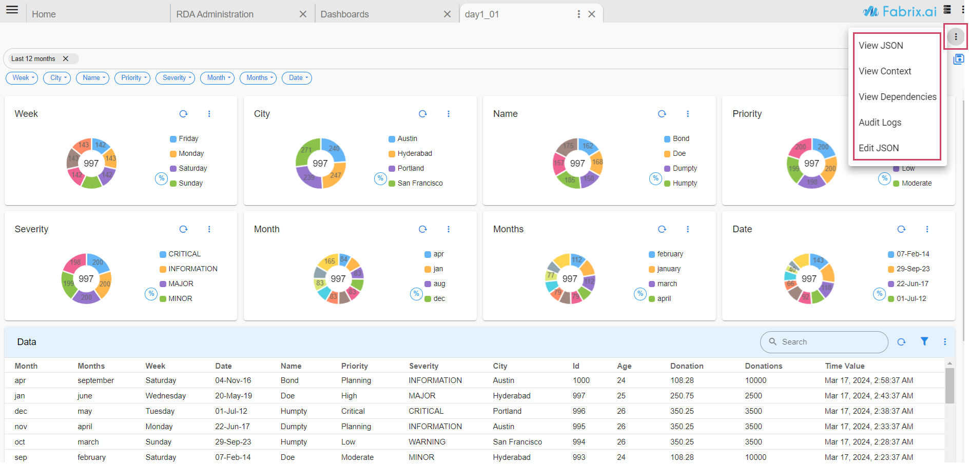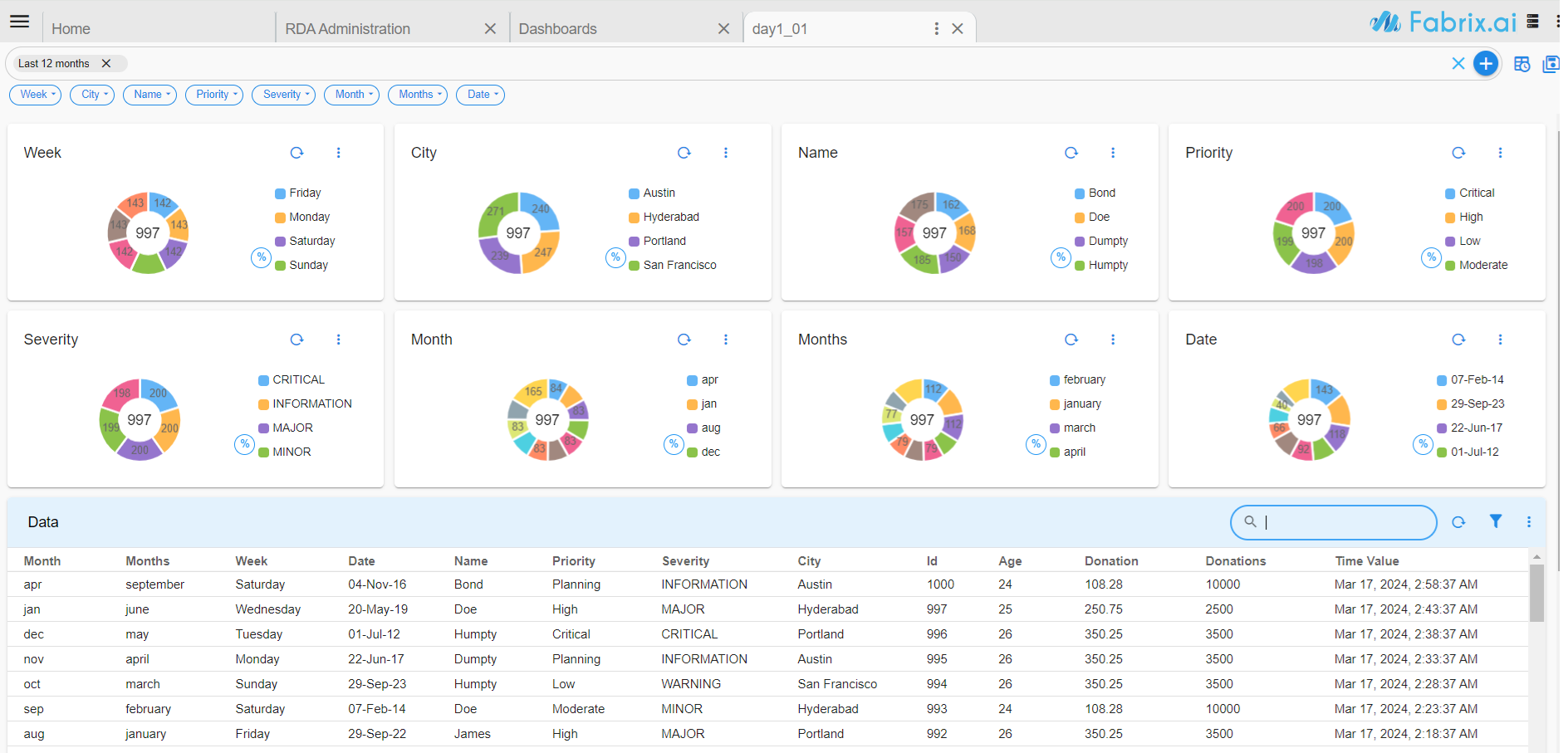 Below are some of the available different data types in RDA Fabric platform using which Dashboards can be created, but not limited to.