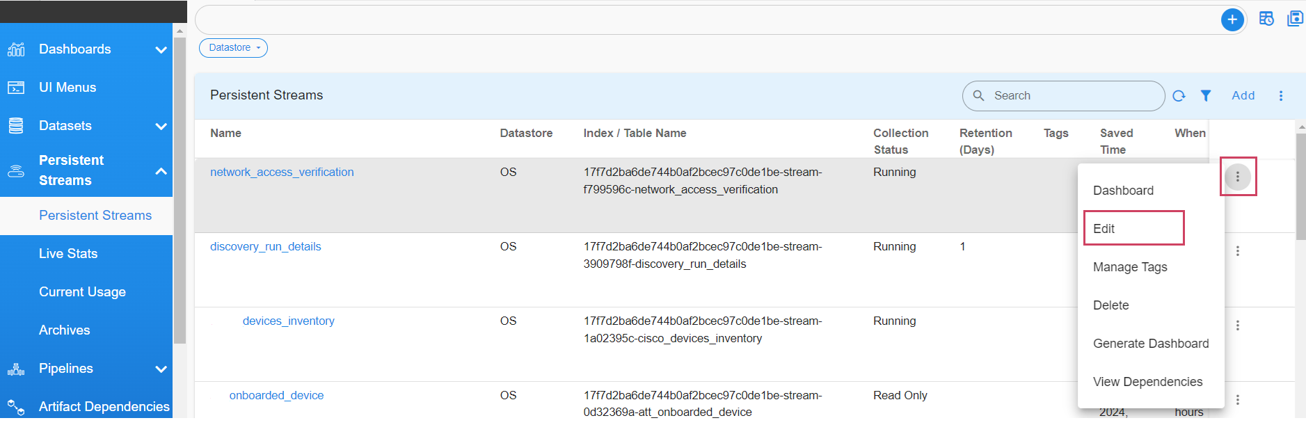 Please do not modify or delete system provided persistent streams. Contact CloudFabrix technical support for any assistance (support@cloudfabrix.com) around system provided ones.