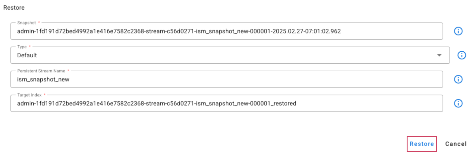 The name of the pstream. Both the source and target pstreams must reside on the same OpenSearch cluster. If the target pstream does not already exist, it will be automatically created within the same cluster as the source. This ensures that both are either within the platform's OpenSearch or on an external OpenSearch instance. Enabling automatic creation of the target pstream is recommended, as it guarantees proper generation of all field mappings. |