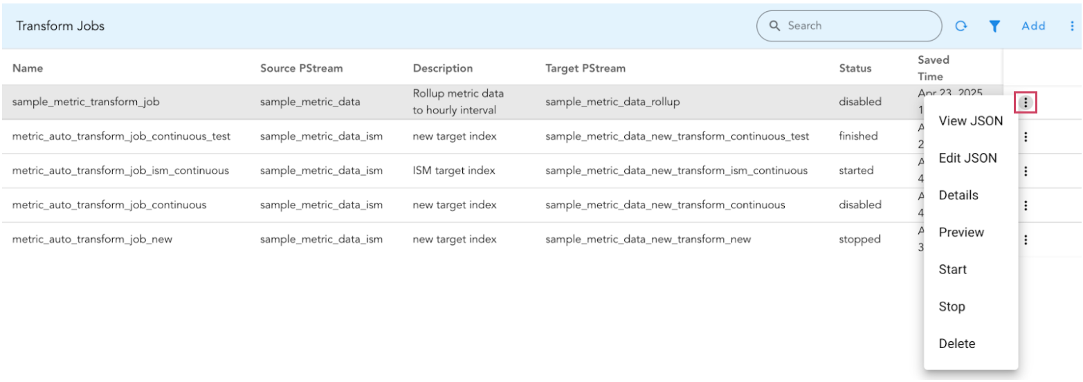 Rollup is crucial when dealing with large volumes of metrics data, in particular, when querying and aggregating over billions of raw metric data points. To achieve this, we introduced support for transform jobs that generate a persistent stream with pre-aggregated and structured information, greatly enhancing the speed of analysis and visualization.
