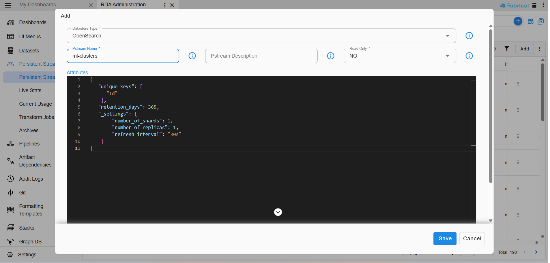 - Go to Home → Navigate to the Configuration -> RDA Administration -> Persistent Streams -> Persistent Streams