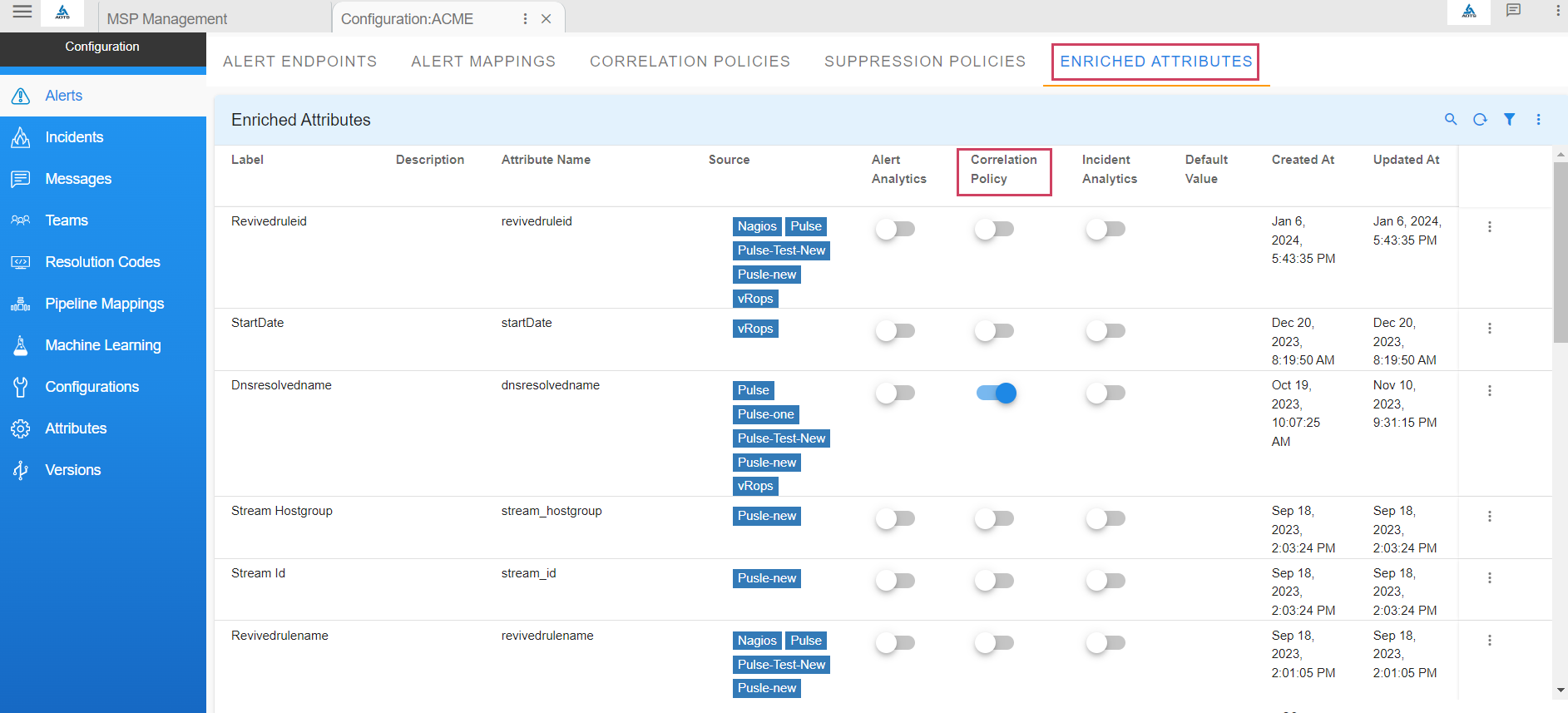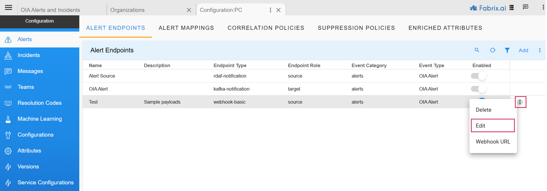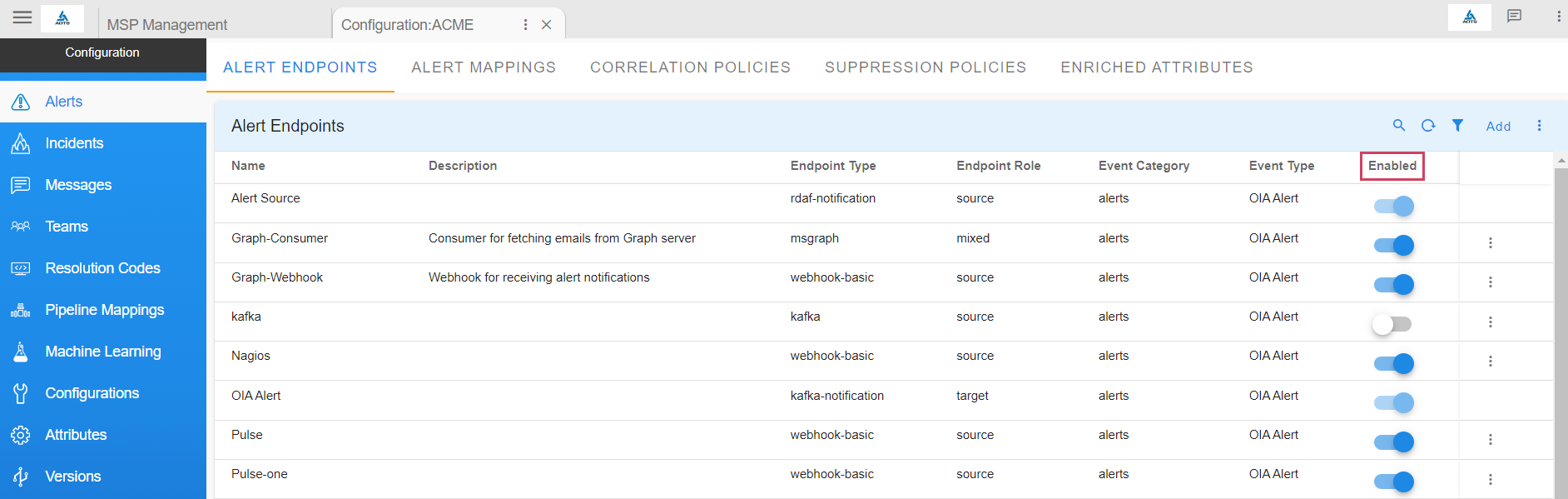 - After the endpoint is added, just as shown in the below screenshot, use the toggle switch under Enabled this will enable the endpoint to start ingesting alerts into the system.