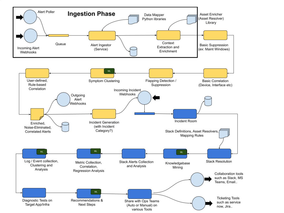 Incident Room is a dynamic and incident-centric workbench that provides all the triage data, Operational metrics, KPIs, Logs, Impacted assets context, Collaboration, and Diagnostic tools all at one place, so that operators can swiftly perform incident root cause analysis and service restoration. This helps in reducing Incident MTTR.