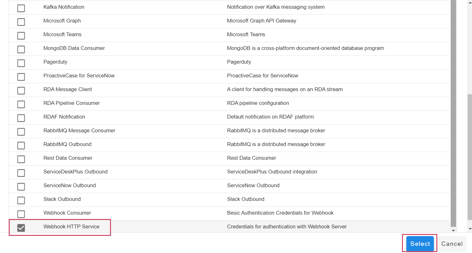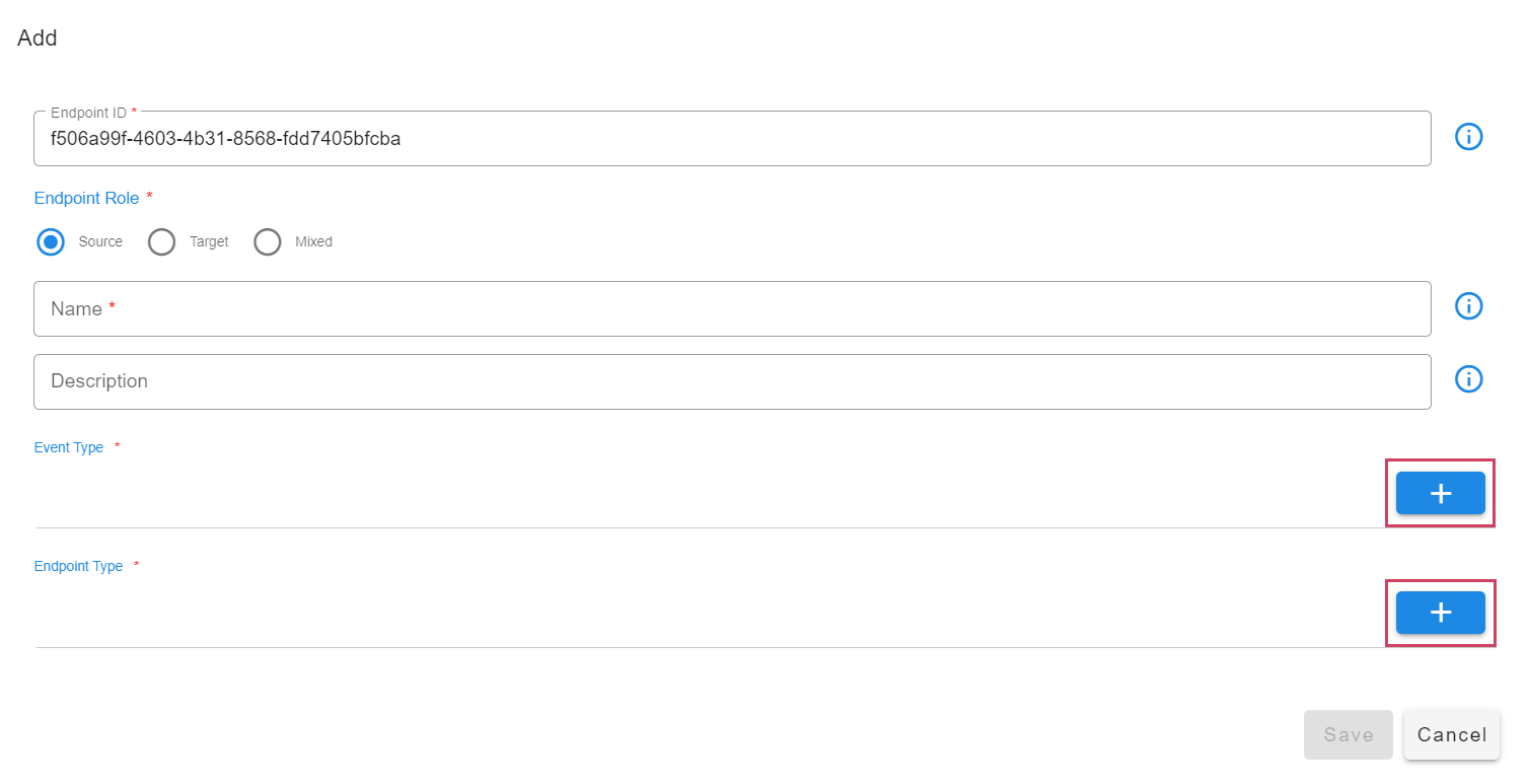 - Add an endpoint and pick the appropriate type for the endpoint. For instance choose Webhook HTTP Service for creating an HTTP endpoint where events can be posted.