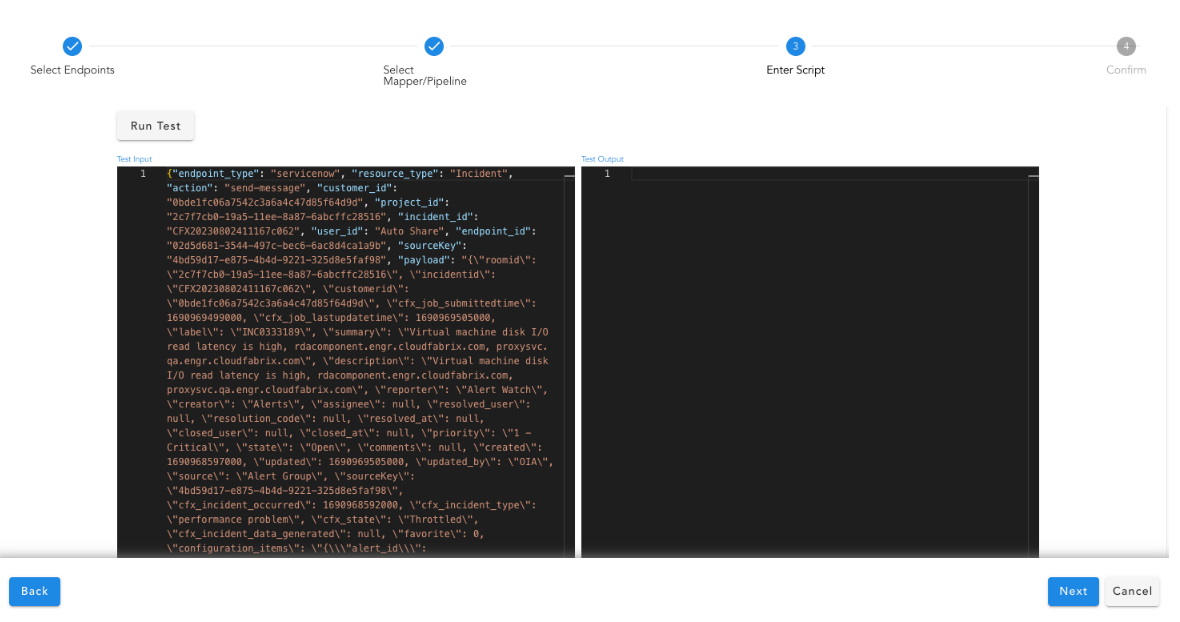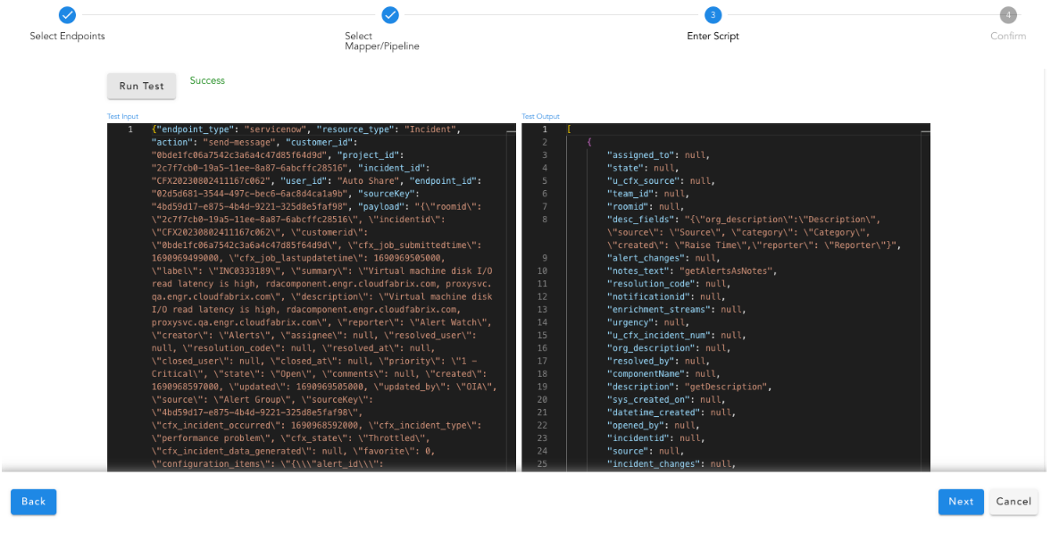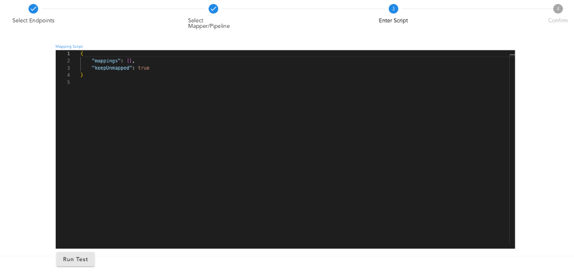 Use the Run Test option to view the mapping results in the output pane. After testing, save the mapping rule.