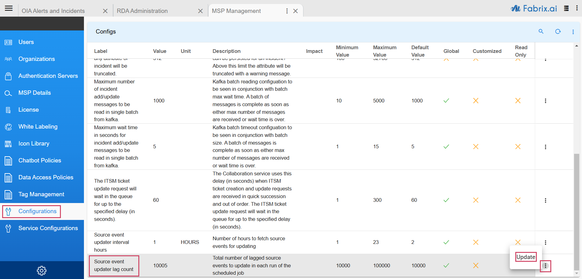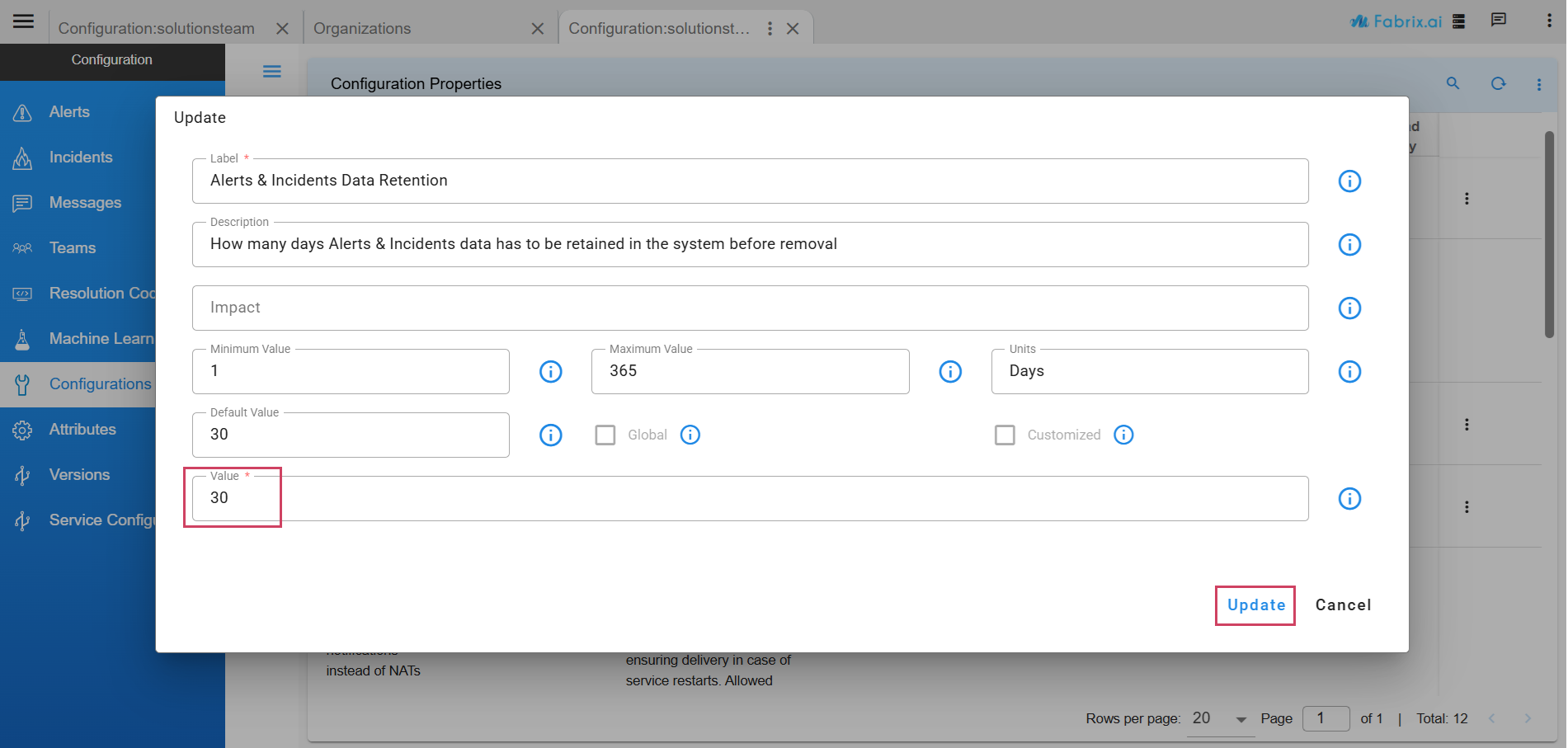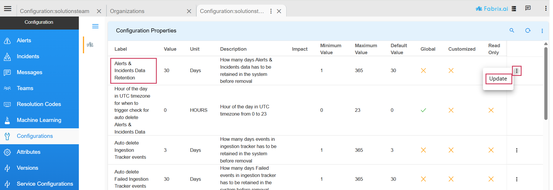 UI Navigation Path : Home (Left Side Menu) -> Administration -> Organizations -> Configure (card level action)