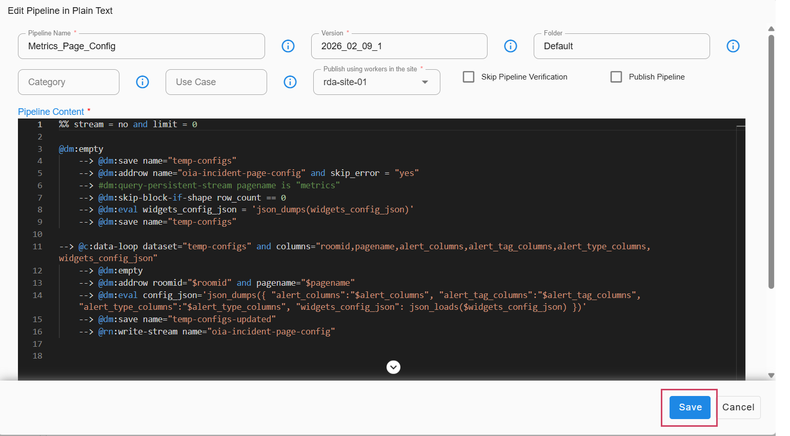 Step 1: Run the pipeline below to migrate the metrics-page configuration from the 8.1.0.x / 8.1.1 format to the new 8.2 format.
