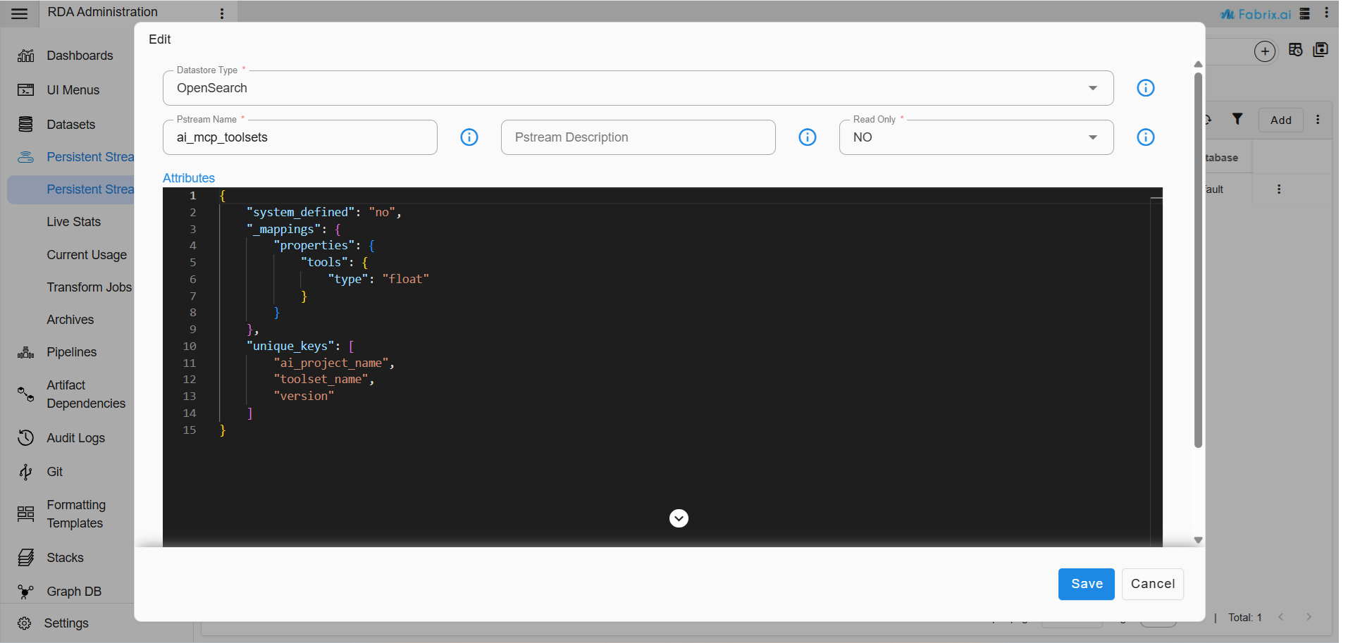 7. Make sure that streams ai_mcp_toolsets and ai_mcp_prompt_templates have unique_key as version in pstream definition. (Also, the stream definitions are provided below in "Step 2")